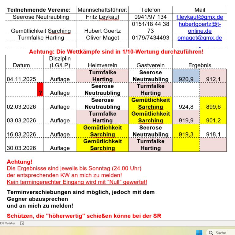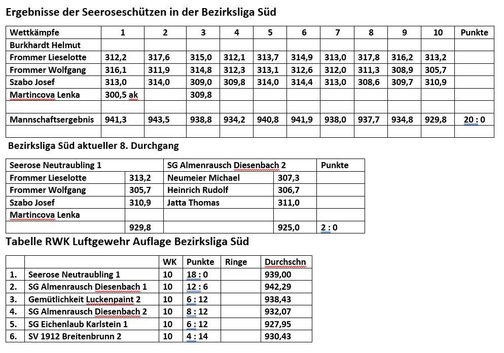 Wir schießen in der Bezirksliga Süd Auflage 2024/25